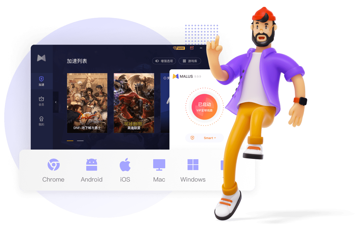 Malus 使用独创的全球节点边缘加速技术,能够做到服务器智能分流,专业稳定。看视频玩游戏,高清不卡顿